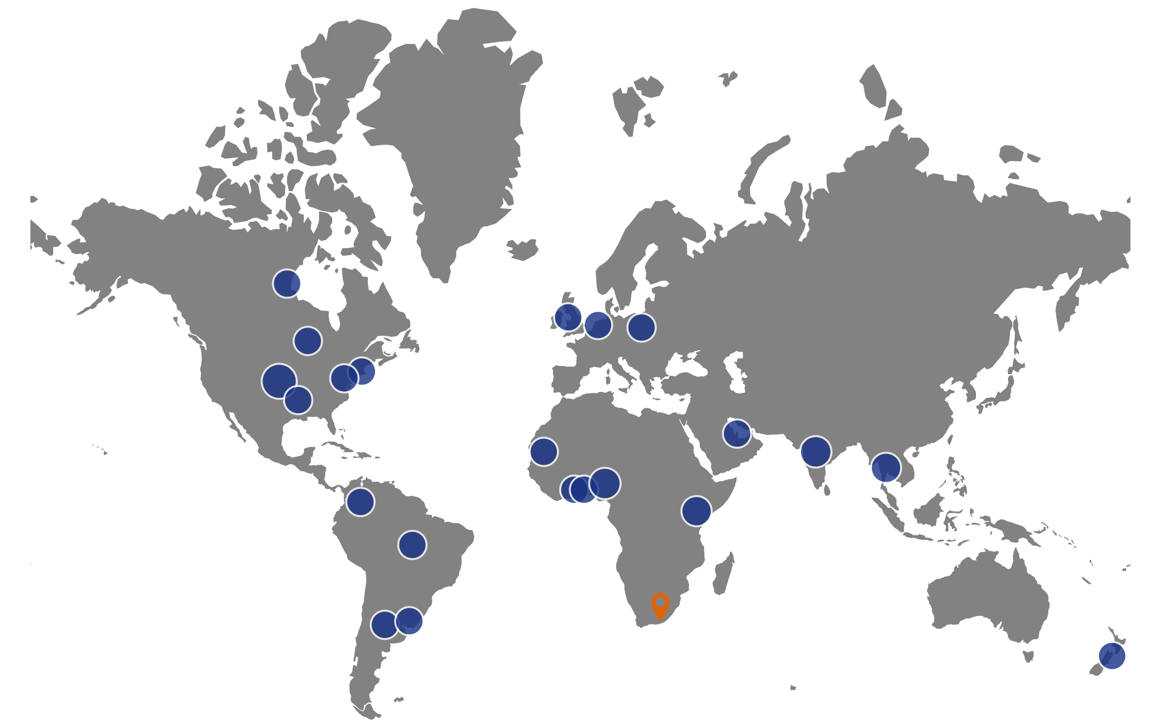 Locations of past and current collaborators
